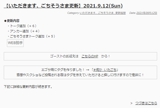 ゴースト公開以降、恐らく一番多く発信する情報&人目に触れる情報は「更新情報」。